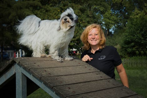 Naast mijn passie voor honden heb ik ook een passie voor het werken samen met mensen. Mensen die om wat voor een reden dan ook de weg kwijt zijn geraakt op hun eigen pad of in de knoop zitten met zichzelf of hun omgeving. Ik heb na mijn afstuderen aan de opleiding Maatschappelijk werk en Dienstverlening daarom met veel plezier jaren gewerkt bij stichting MEE Plus groep. Hier heb ik me verder gespecialiseerd in het leren ondersteunen van mensen vanuit een gelijkwaardige relatie met respect voor ieders verhaal.